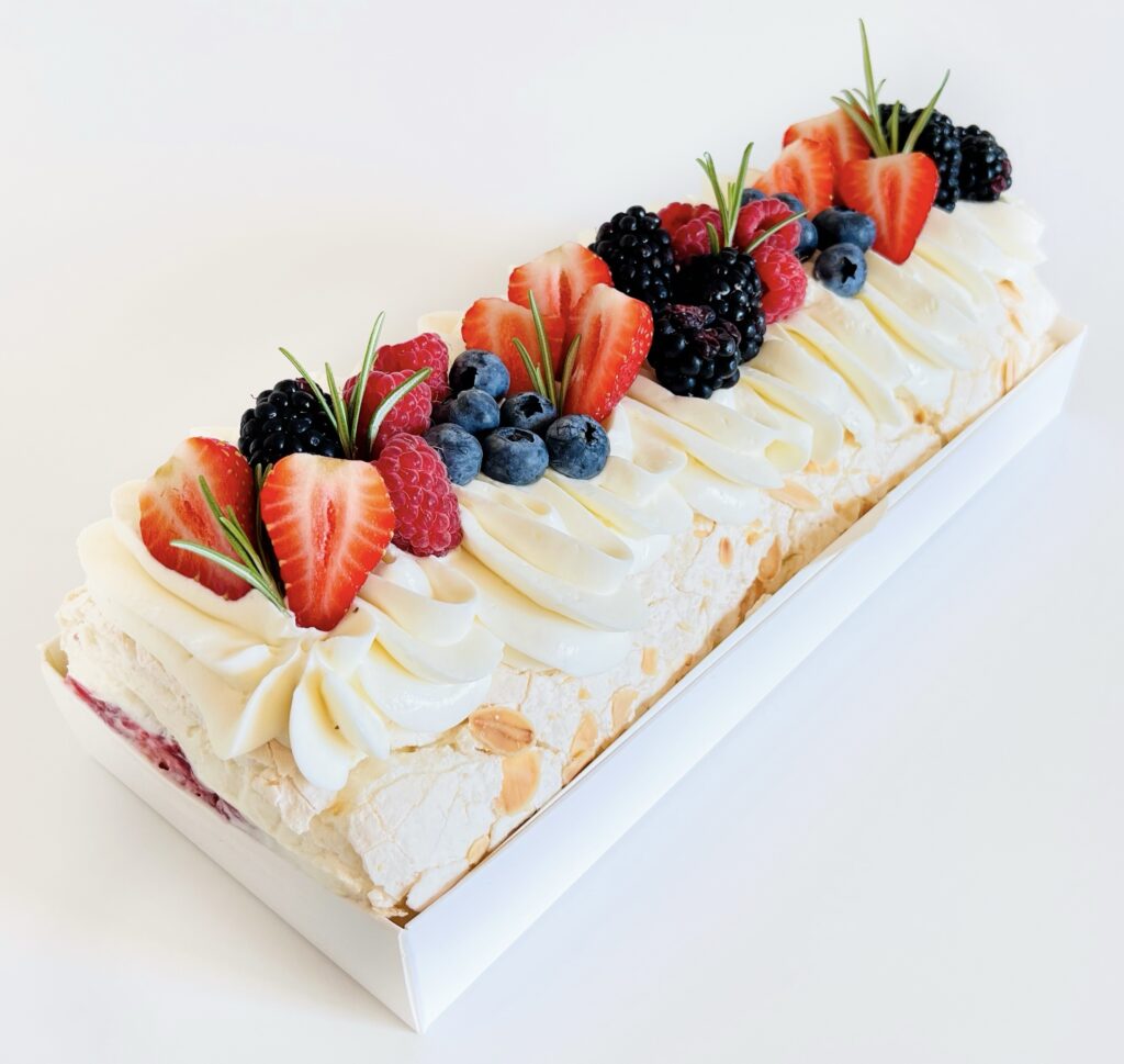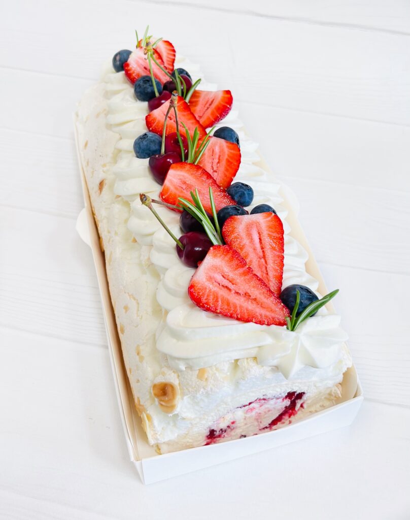 Воздушная меренга с нежным сливочно-творожным кремом и свежими ягодами, либо фруктами ( на выбор). Ягоды в стоимость не включены.