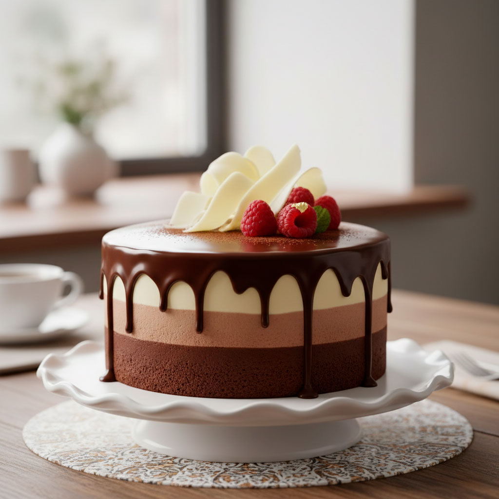 Воздушные коржи с ноткой шоколада, ягодный конфитюр с кислинкой и творожный крем.